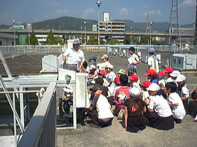 | 汚泥ケーキは,食べるケーキかと思ったら,ドロを固めて作ったものでした。ケーキだと思ったときは,なんで浄水場にケーキがあるのかと思っていました。 汚泥ケーキは,変なにおいがしました。配水池の上は芝生だったのを初めて知りました。水道資料館では,いろいろな水道に関する資料を見ることができて,よく水のことがわかりました。 浄水場を見学して,川から取り入れた汚れた水がだんだんときれいになっていく様子がよく分かって,大変勉強になりました。 浄水場の中の大きな池では,はねが回っていて,横を見ると,フロックの固まりがあって,それを毎日網ですくっていると聞いて,大変だなあと思いました。沈殿池や濾過池も見学できて勉強になりました。 最初は,水がとても汚かったので,こんな水は飲みたくないなあと思っていました。でも,見学していくと,水がだんだんときれいになっていったのでびっくりしました。 牛田浄水場の水道資料館は,すごくおもしろかったので,もう一度行きたいなと思いました。それと,水道のことにとても興味を持ちました。 |